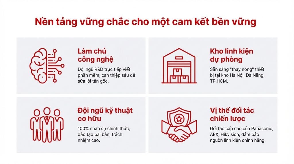 - Làm chủ công nghệ (R&D): Trực tiếp viết phần mềm nên có thể can thiệp sâu vào mã nguồn để sửa lỗi tận gốc, không phải chờ đợi hãng nước ngoài.