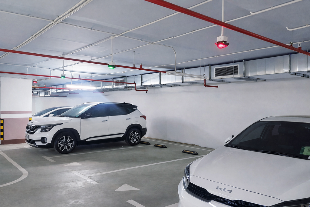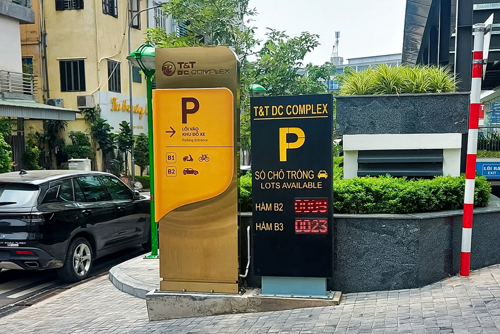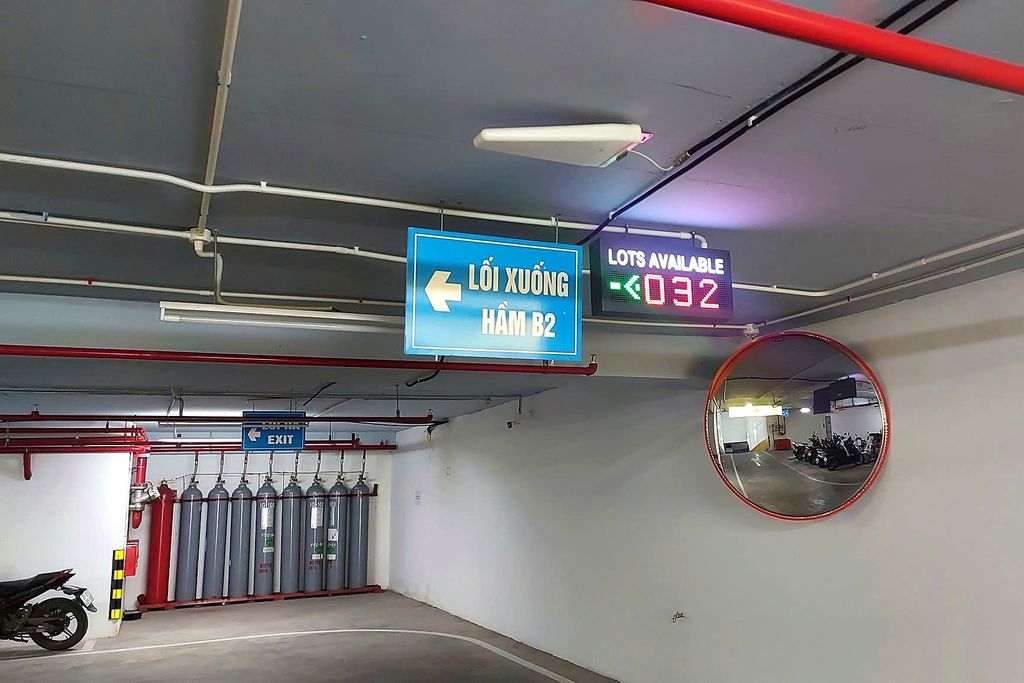 - Hỗ trợ tìm điểm đỗ xe thông minh: Với quy mô nhiều tầng hầm phục vụ hỗn hợp cả cư dân và khách thương mại, việc tìm chỗ đỗ là một trở ngại. Công nghệ cảm biến siêu âm giúp xác định chính xác vị trí trống và dẫn hướng trực quan, giúp lái xe tiết kiệm thời gian và giảm lượng khí thải quẩn trong hầm.
