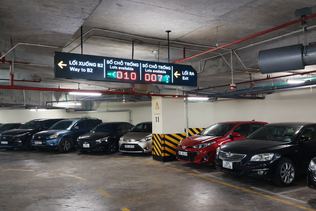 - Dễ dàng tìm chỗ đỗ trong hầm rộng: Hệ thống cảm biến và đèn báo vị trí trống giúp nhân viên văn phòng nhận biết ngay khu vực còn chỗ đậu xe. Việc này loại bỏ tình trạng lái xe lòng vòng tìm kiếm, tiết kiệm thời gian và giảm khí thải trong hầm.