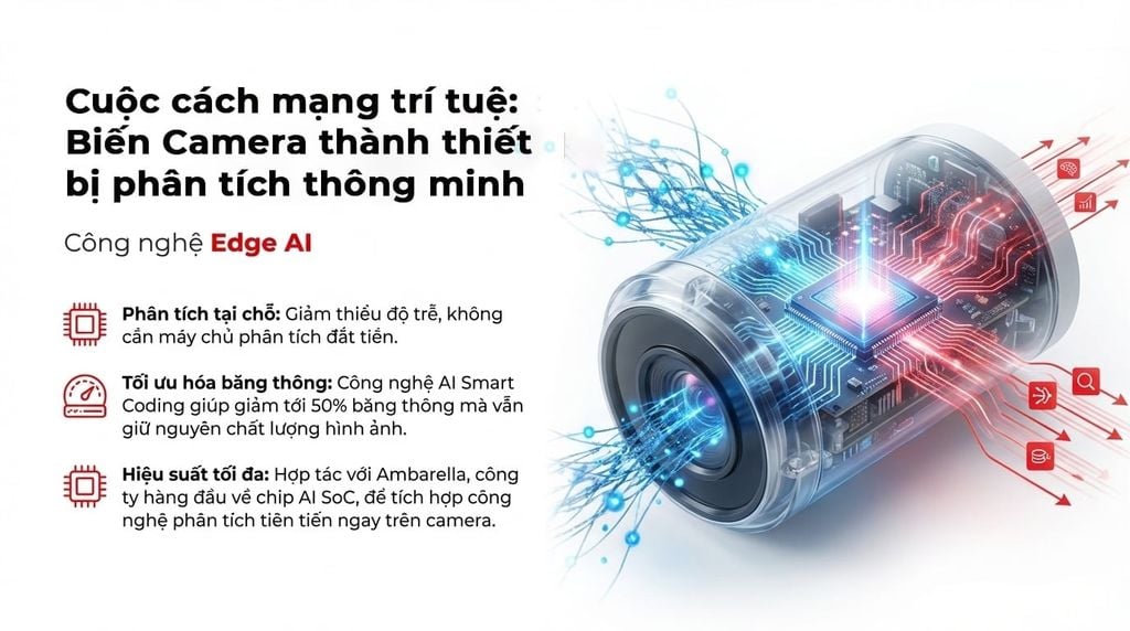 - Chức năng: Phân tích hình ảnh, nhận diện khuôn mặt, biển số xe và hành vi ngay trên camera trước khi truyền về trung tâm.