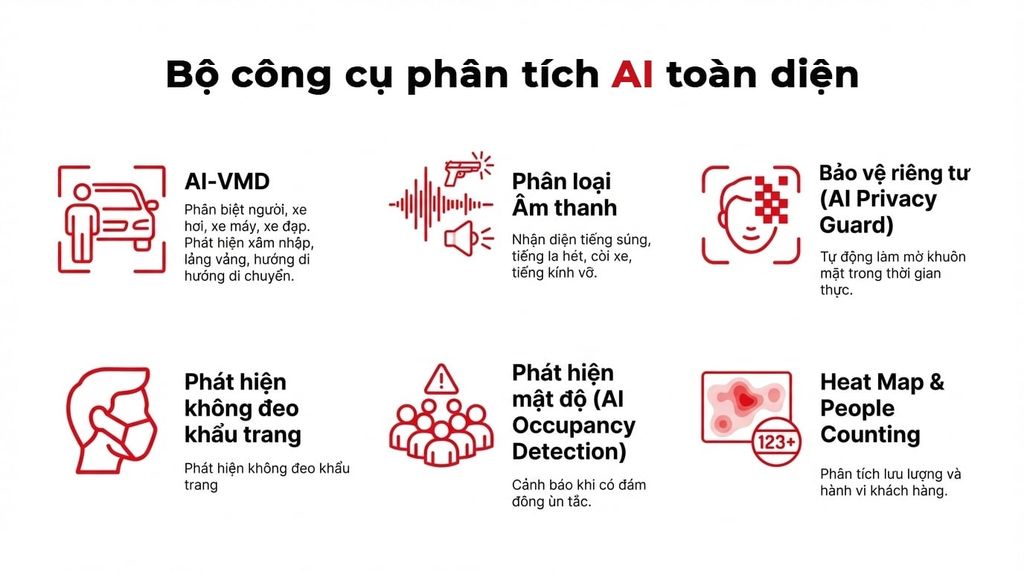 Sử dụng các dòng camera quan sát cao cấp tích hợp chip AI xử lý dữ liệu ngay tại nguồn (Edge Processing).