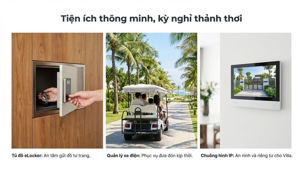 - Tủ đồ thông minh (eLocker): Trang bị tại khu vực bể bơi, bãi biển hoặc sảnh lễ tân để khách gửi hành lý, tư trang an toàn khi chưa đến giờ check-in hoặc sau khi check-out.