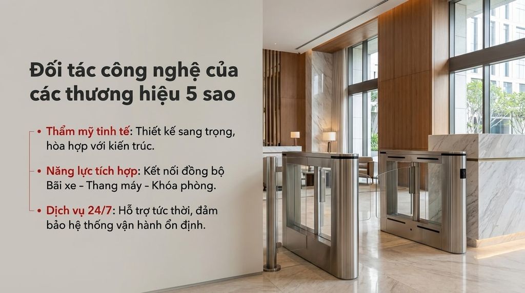 Trong ngành dịch vụ lưu trú (Hospitality), sự sang trọng không chỉ đến từ kiến trúc lộng lẫy mà còn đến từ sự tiện nghi, riêng tư và an toàn tuyệt đối mà khách hàng cảm nhận được. Một bãi xe thông thoáng, một hệ thống thang máy bảo mật hay quy trình check-in "không chạm" chính là những điểm cộng tinh tế giữ chân khách hàng thượng lưu.