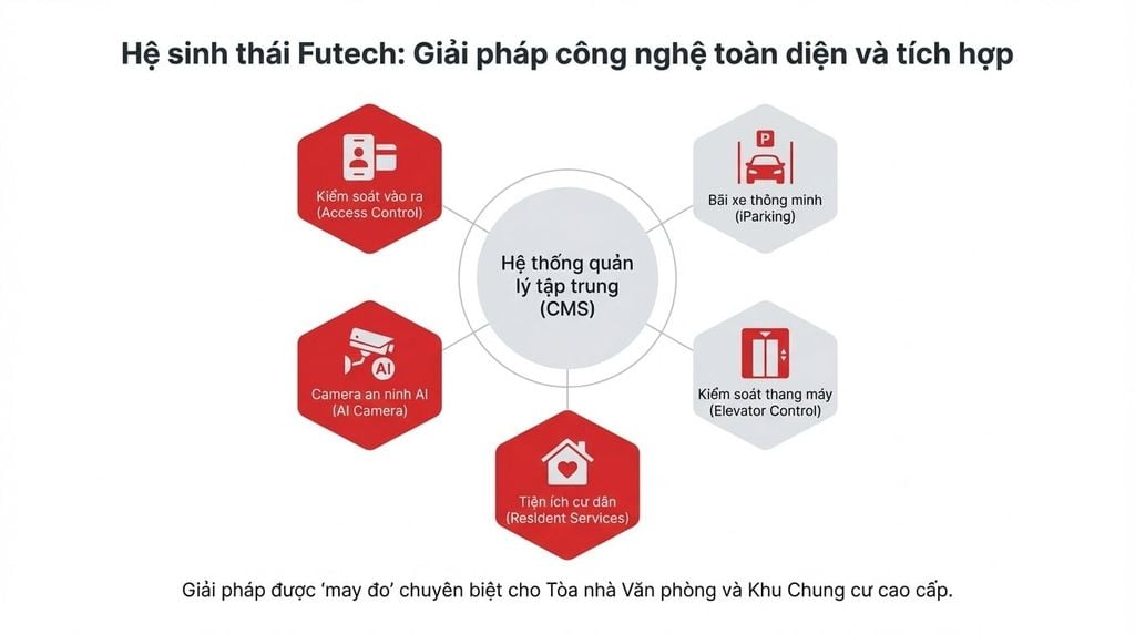 Futech mang đến hệ sinh thái giải pháp công nghệ tích hợp toàn diện, được "may đo" chuyên biệt cho hai nhóm đối tượng chính: Tòa nhà Văn phòng và Khu Chung cư cao cấp, giúp Chủ đầu tư giải quyết triệt để bài toán: An ninh - Tiện ích - Tối ưu chi phí vận hành.
