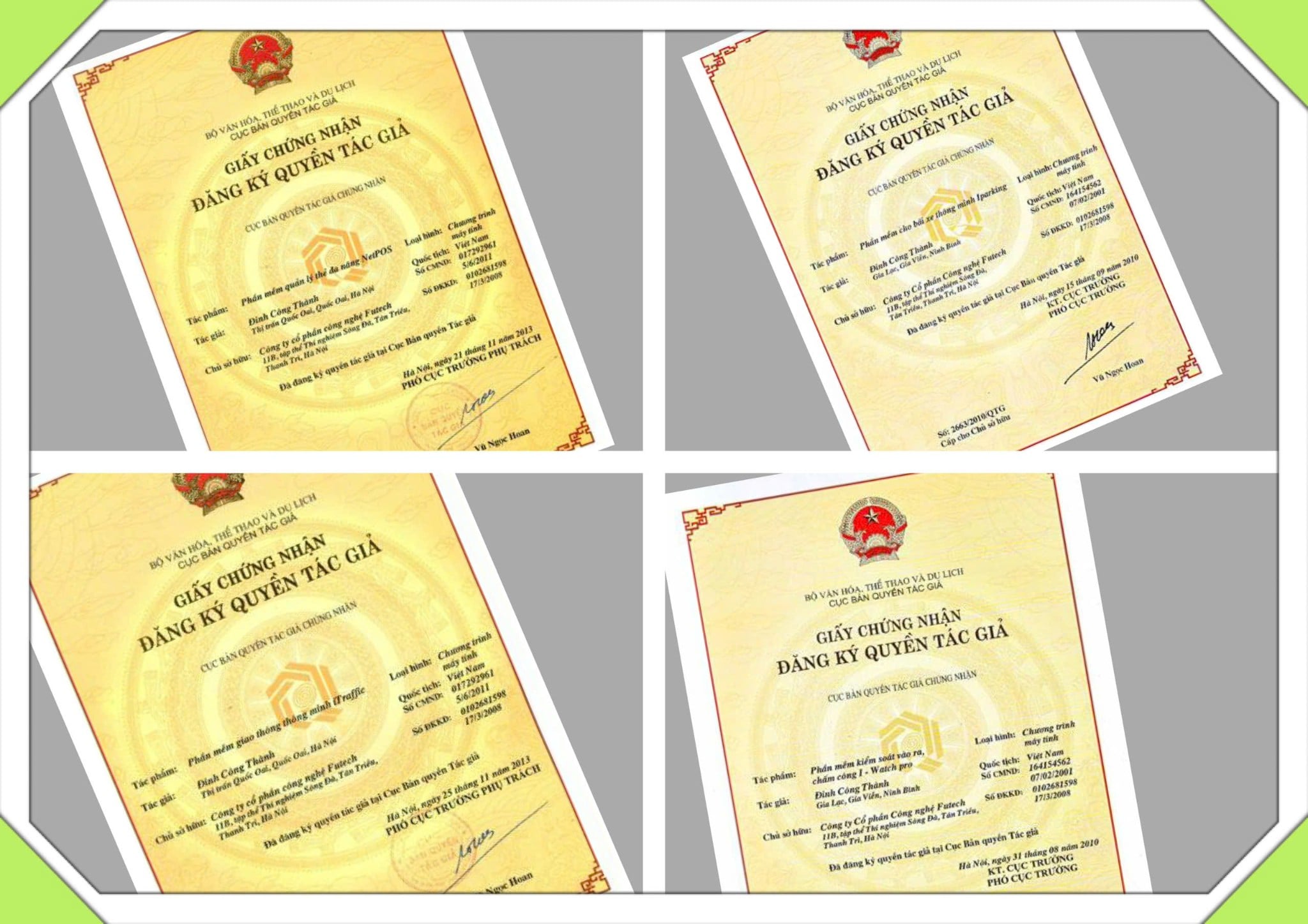 Futech sở hữu nhiều chứng nhận đăng ký bản quyền phần mềm và giải pháp công nghệ, thể hiện năng lực nghiên cứu, phát triển và làm chủ công nghệ cốt lõi của doanh nghiệp Việt.