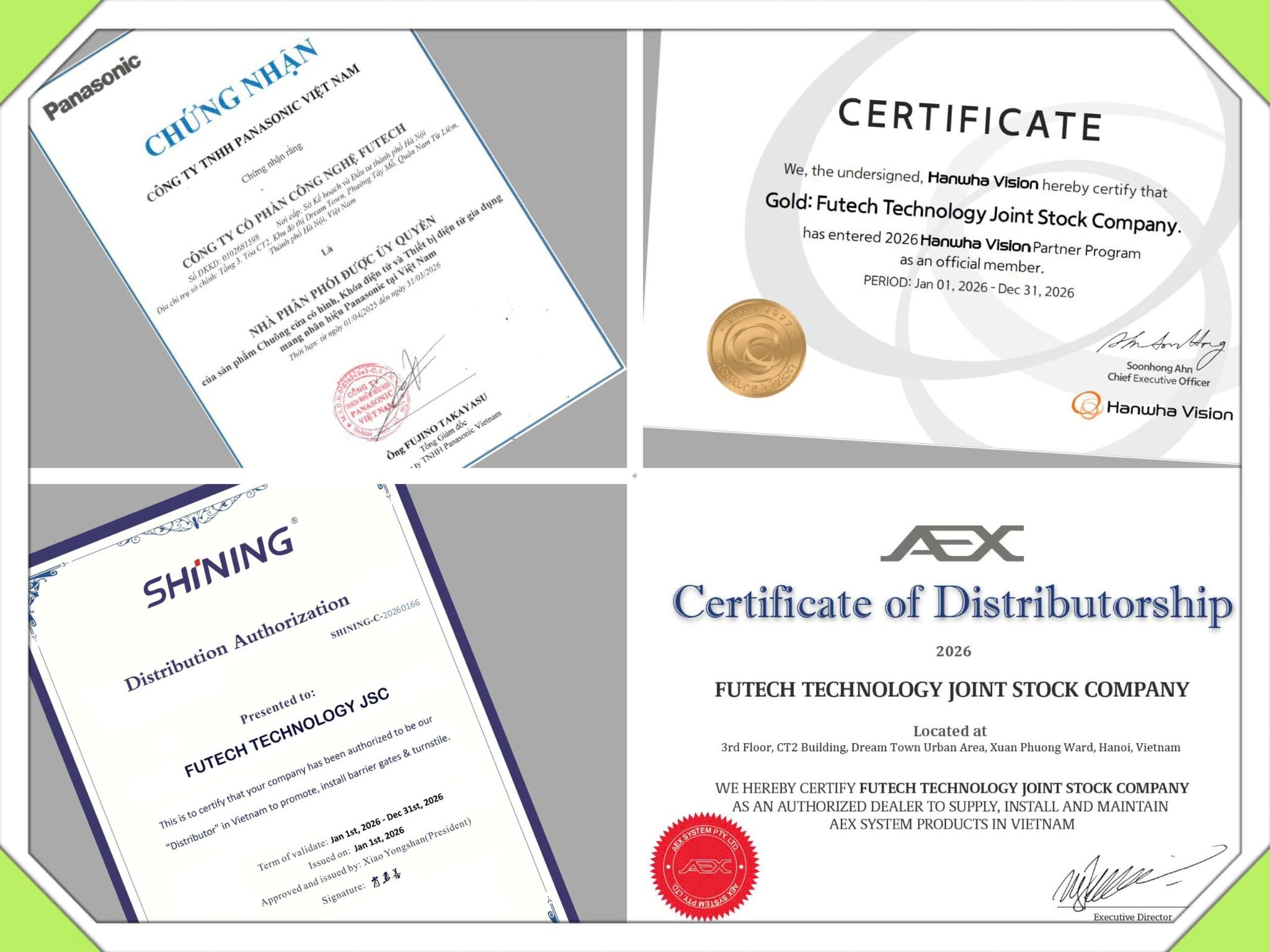 Với định hướng mang tới cho khách hàng những sản phẩm công nghệ hiện đại và chất lượng cao, Futech là nhà phân phối chính thức của nhiều thương hiệu quốc tế, được cấp đầy đủ chứng nhận phân phối và ủy quyền tại thị trường Việt Nam.
