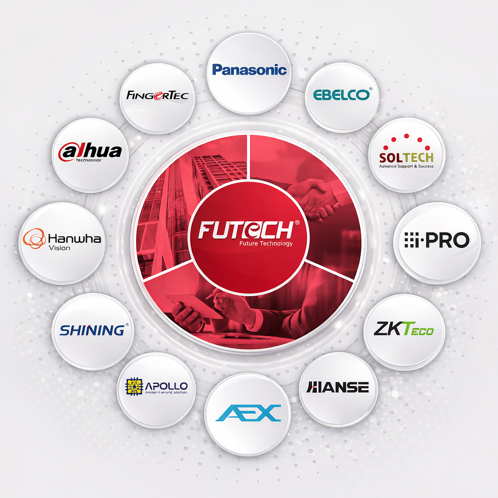 Các đối tác tiêu biểu gồm: Panasonic, i-PRO, AEX, Bosch, ZKTeco, Hanwha Vision, Dahua, Hikvision, Apollo, Soltech, EBELCO, cùng nhiều thương hiệu uy tín khác.